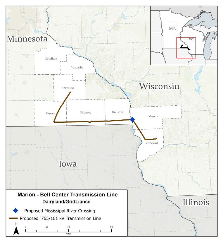 The Midcontinent Independent System Operator (MISO) assigned the proposed transmission project to Dairyland and GridLiance Heartland. We will build and maintain approximately 140 miles of modern, reliable infrastructure that stretches from Marion, Minn., to Bell Center, Wis.